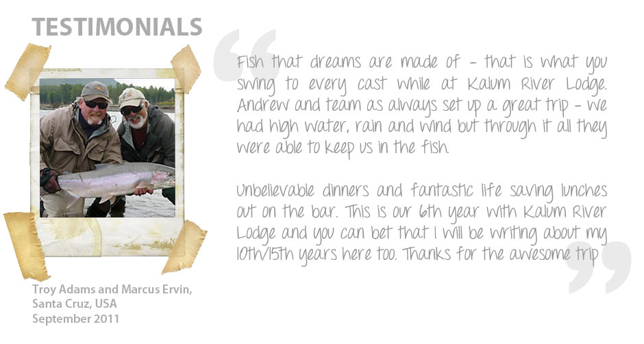 To catch the King of fish is by no means an easy feat but our salmon fishing holidays certainly make it a little easier. Situated overlooking the Kalum River (complete with private boat launch) and a stone's throw from the world famous Skeena River system, our lodge is your home-from-home for record-breaking fishing. Based in Terrace, B.C, we have access to numerous Salmon and Steelhead big-fish rivers with regular encounters of 50lb+ Chinook Salmon.