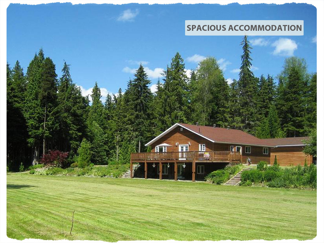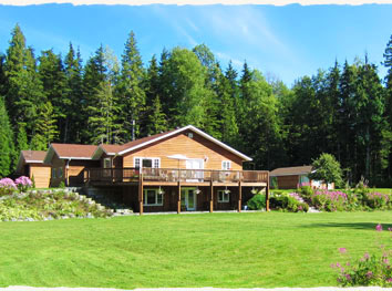 Set in secluded wilderness north of Terrace, B.C., our lodge provides spectacular mountain views and private access to the Kalum River whilst the famous Skeena River is just a ten minute boat ride away. With it's mature lawns and gardens nestled amongst old growth forest our lodge provides comfortable guest accommodation in both single and twin rooms. After a full day's fishing, guests enjoy delicious gourmet-style home cooked meals, first-class Canadian service and friendly conversation (about the days fishing). Click here for more Lodge Information & Pictures